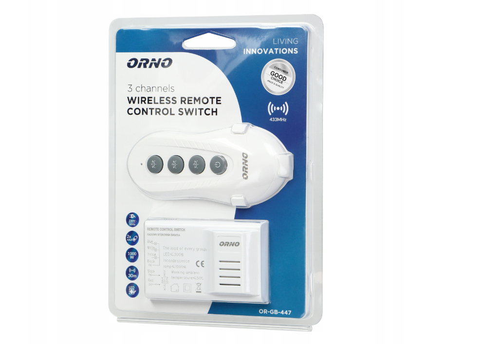 Bezprzewodowy 3-kanałowy sterownik oświetlenia z pilotem ORNO OR-GB-44