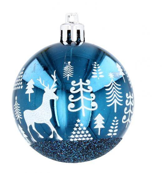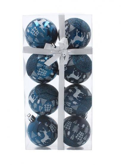 Bombki choinkowe komplet 8szt. bombek plastikowych 6cm niebieskie - 3 motywy do wyboru: renifer, śnieżynka, wzorek