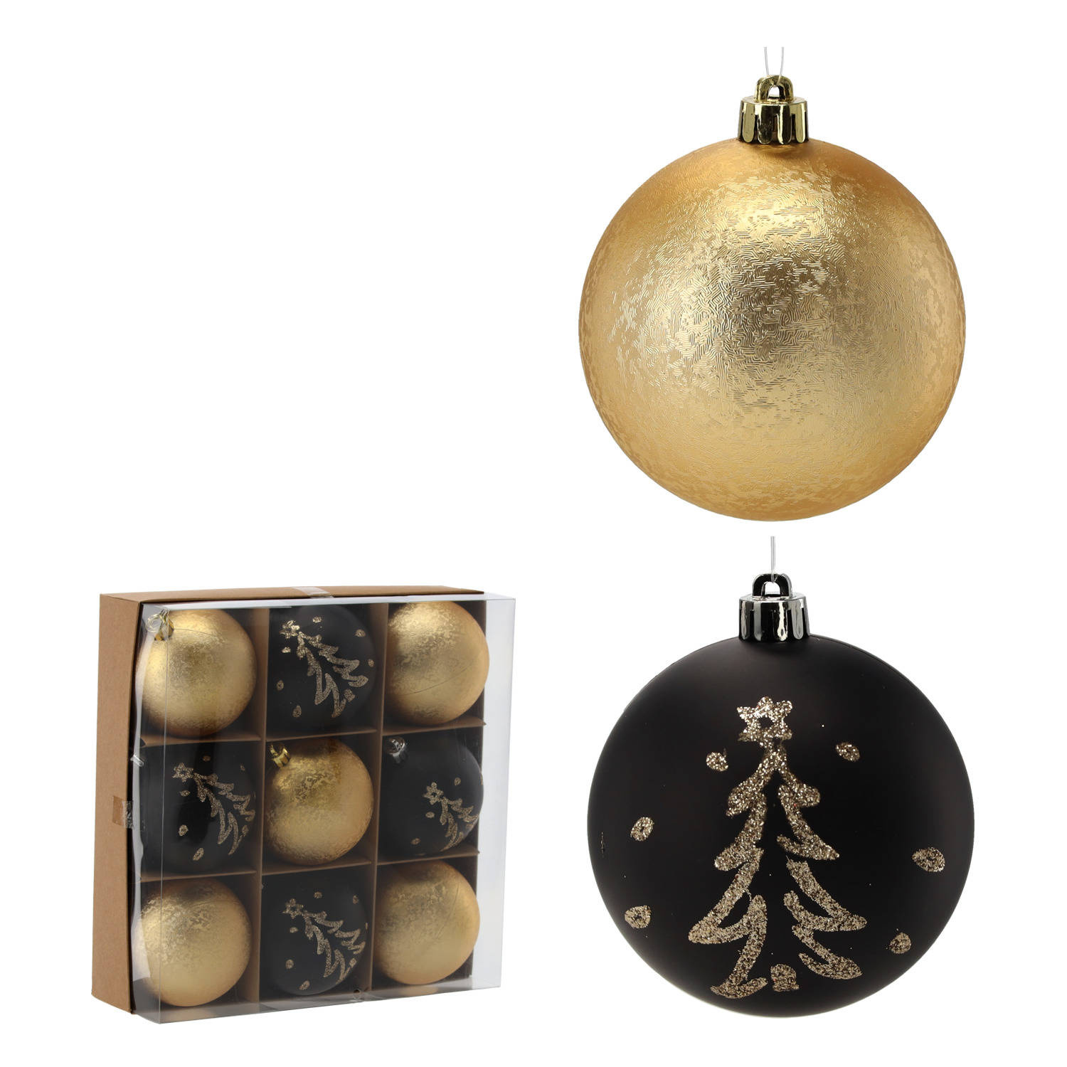 Bombki choinkowe komplet 9szt. bombek plastikowych 8cm czarno-złote