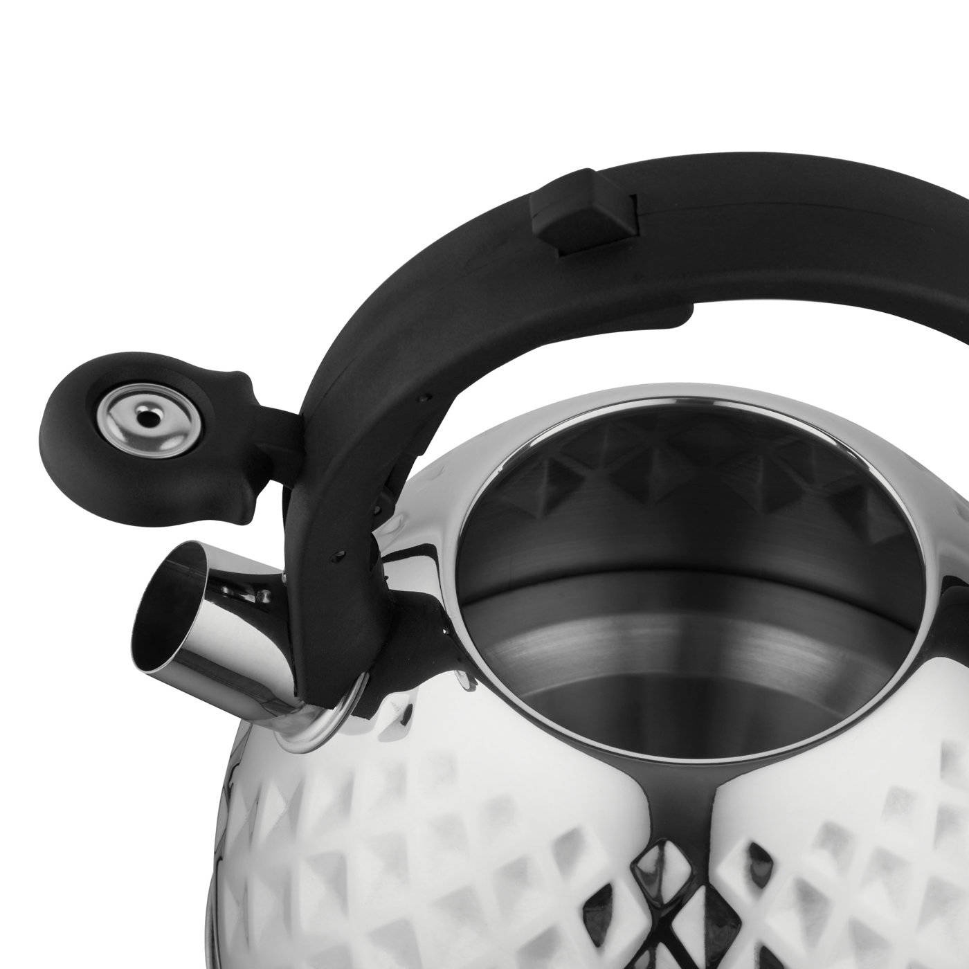 Naczynie ma nylonowy uchwyt, który nie nagrzewa się w trakcie użytkowania. Faktura korpusu czajnika przypomina kształt diamentu. Czajnik więc będzie eleganckim dodatkiem kuchni.