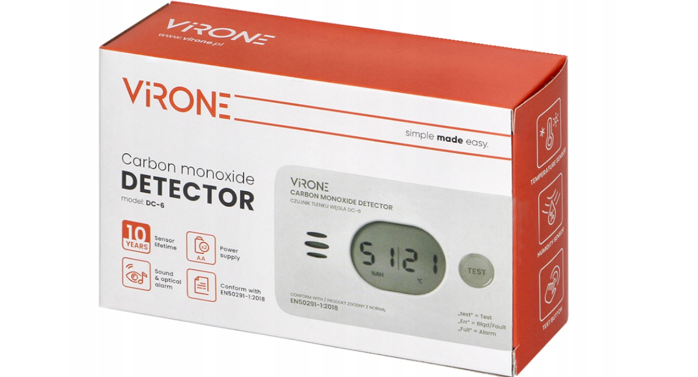 Czujnik tlenku węgla jest niewielki gabarytowo, zamknięty w jednej obudowie. Zastosowano w nim jeden z najbardziej zaawansowanych technologicznie sensorów elektrochemicznych na świecie oraz elektroniczny układ sterujący, pozwalające na osiągnięcie wysokiego wskaźnika wykrywalności przy małym poborze prądu. ŻYWOTNOŚĆ SENSORA TO, AŻ 10 LAT.