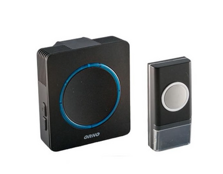 - Dzwonek bezprzewodowy ORNO w hermetycznym przyciskiem. Zasięg działania w terenie otwartym 100m. Odbiornik zasilany bateriami AAA, nadajnik bateryjny.