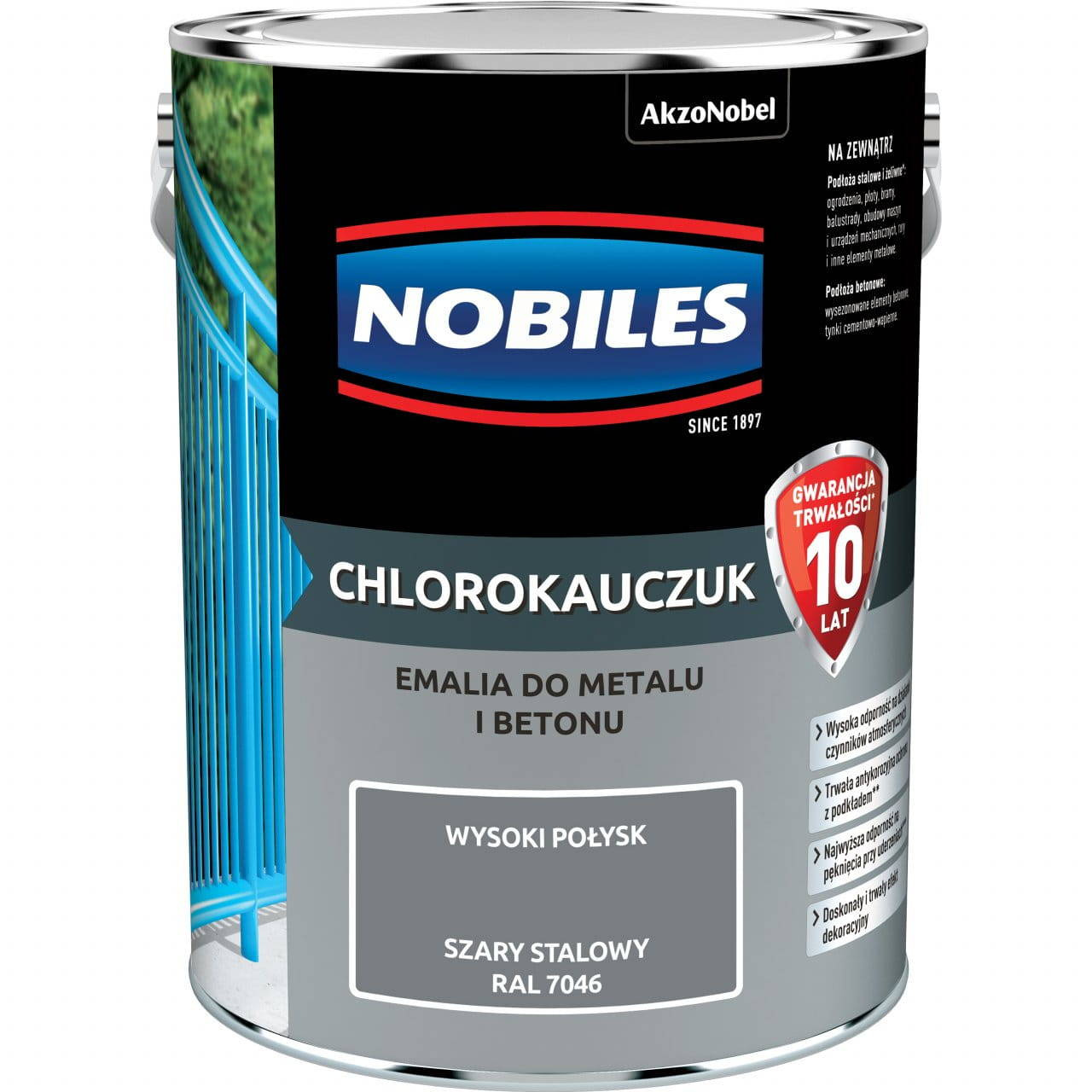 • Nobiles Chlorokauczuk to wysoce odporna emalia przeznaczona do ochronno-dekoracyjnego malowania powierzchni stalowych, żeliwnych i betonowych eksploatowanych na zewnątrz.