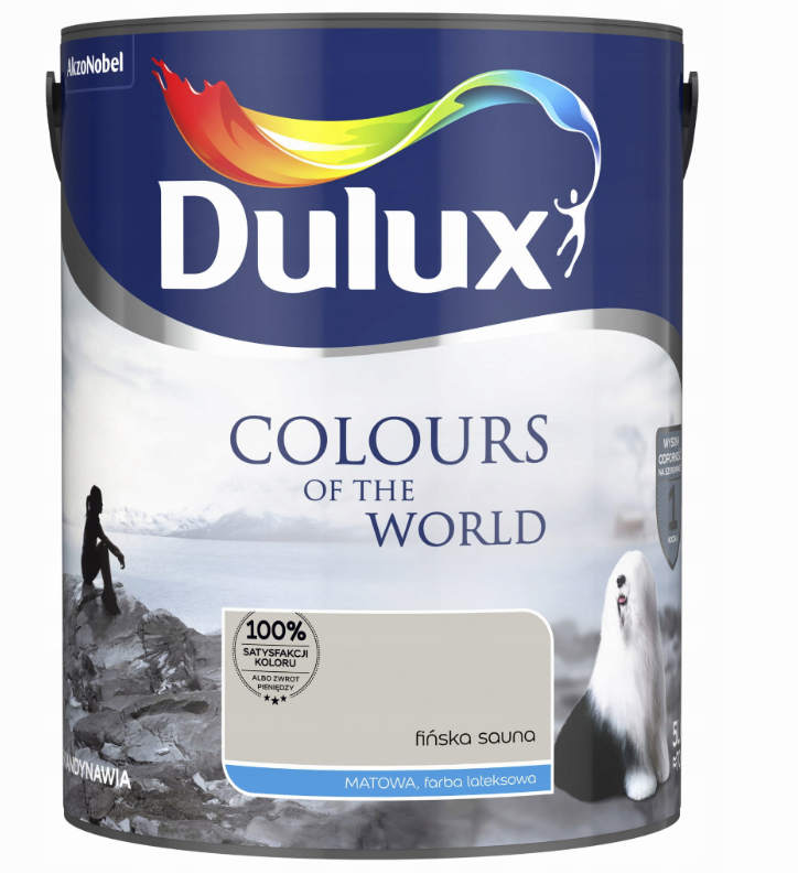 Dulux Coloursof the World (Kolory Świata) to lateksowa farba do ścian i sufitów o matowym wykończeniu zapewniająca trwałość koloru. Farba Dulux doskonale kryje i jest wyjątkowo odporna na szorowanie, dzięki czemu dłużej możesz cieszyć się kolorem. Dulux Kolory Świata to kolekcja aż 78 wspaniałych kolorów, inspirowanych najpiękniejszymi zakątkami świata, dostępna w postaci lateksowej emulsji do ścian i sufitów o matowym wykończeniu. Dzięki wyjątkowej formule tworzy bardzo trwałe i odporne na zmywanie powłoki, zachowując idealny wygląd i kolor ścian.