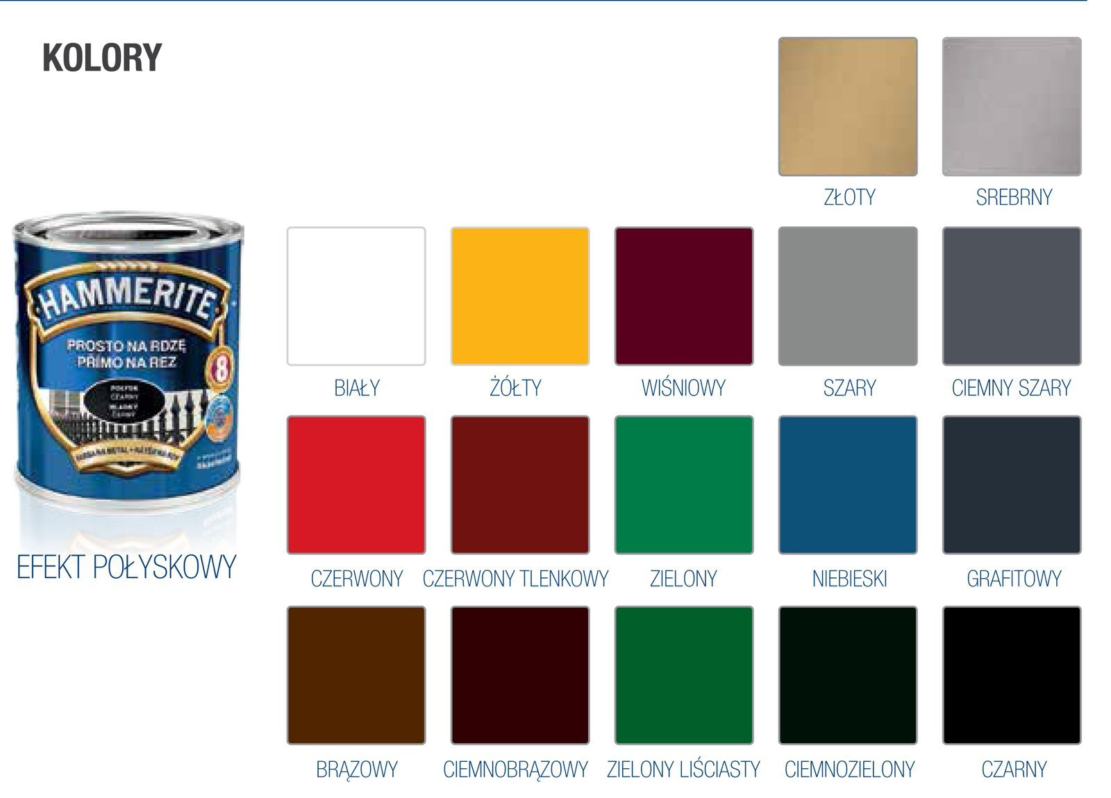 • Jest to nowoczesna, jednoskładnikowa farba. Farba HAMMERITE prosto na rdzę przeznaczona jest do malowania antykorozyjnego oraz dekoracyjnego metali żelaznych (stal, żeliwo), zarówno tych pokrytych rdzą jak i czystych.