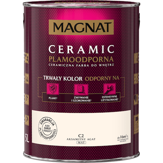 Farby ceramiczne to produkty, które wyróżnia specyficzna formuła składu z dodatkiem żywic, wypełniaczy, pigmentów oraz specjalnych mikrokuleczek ceramicznych zapewniających wyjątkowe właściwości. Naniesione na ścianę tworzą twardą, zwartą, cienką i plamoodporną powłokę, która nie ulega uszkodzeniom nawet podczas szorowania.