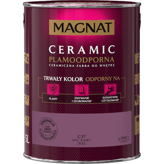 - Farby MAGNAT z kolekcji CERAMIC to farby plamoodporne, które tworzone są z najwyższej jakości żywic oraz pigmentów tak aby spełniały potrzeby najbardziej wymagających klientów.