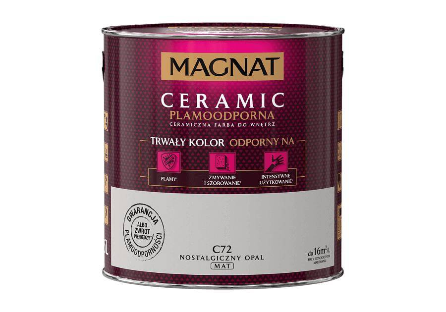 - Farby MAGNAT z kolekcji CERAMIC to farby plamoodporne, które tworzone są z najwyższej jakości żywic oraz pigmentów tak aby spełniały potrzeby najbardziej wymagających klientów.
