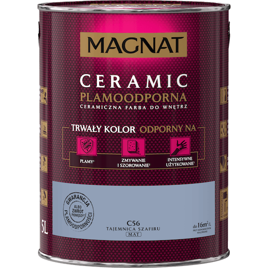 - Farby MAGNAT z kolekcji CERAMIC to farby plamoodporne, które tworzone są z najwyższej jakości żywic oraz pigmentów tak aby spełniały potrzeby najbardziej wymagających klientów.