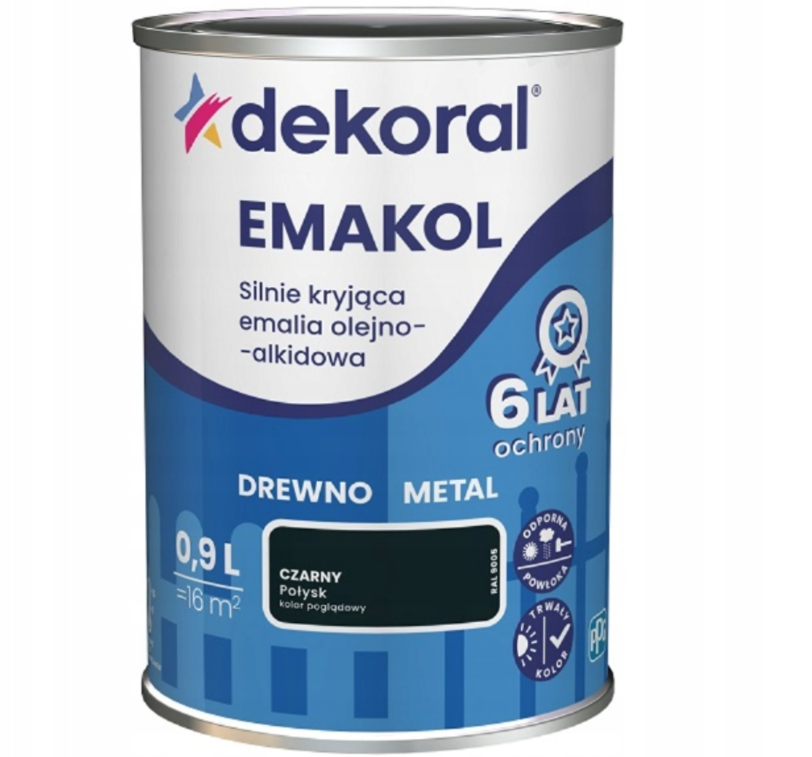 Farba olejno-alkidowa DEKORAL EMAKOL STRONG czarny połysk 0,9L