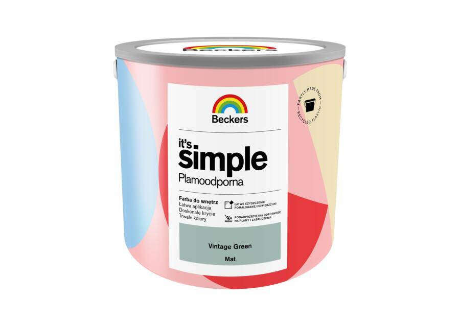 BECKERS IT'S SIMPLE to farby plamoodporne, hydrofobowe, wodorozcieńczalne, przeznaczone do malowania ścian i sufitów o ponadprzeciętnej odporności na plamy, szorowanie i zmywanie.
