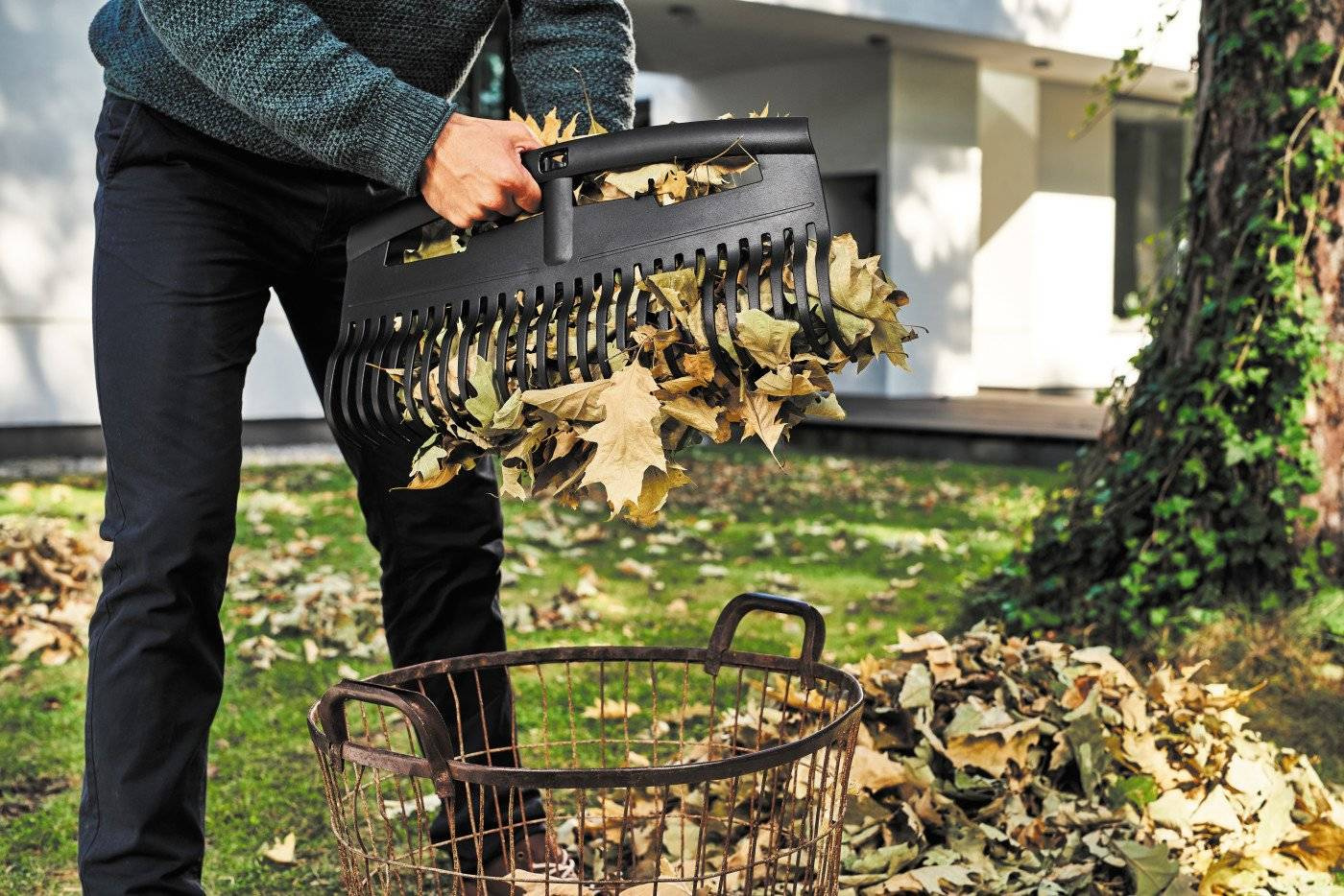 - Do grabienia liści, trawy i innych odpadów ogrodowych, pełni funkcję zgarniacza, może być wykorzystana do przenoszenia liści,