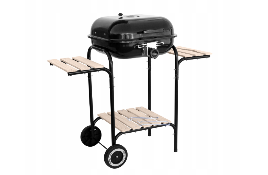 Funkcjonalnym atutem są boczne półki oraz dodatkowa dolna półka, które ułatwiają grillowanie oraz przechowywanie podręcznych akcesoriów.