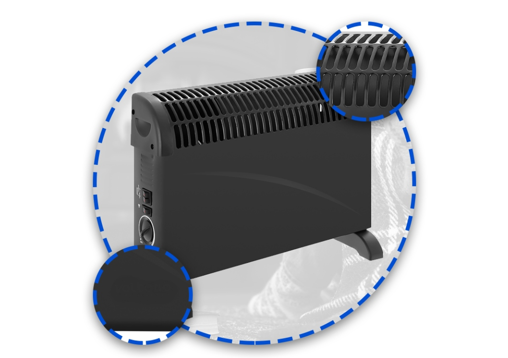 Grzejnik elektryczny konwektorowy posiada 3 stopniowa regulacje mocy 750 / 1250 / 2000 W. Zapewnia wysoką efektywność grzania.