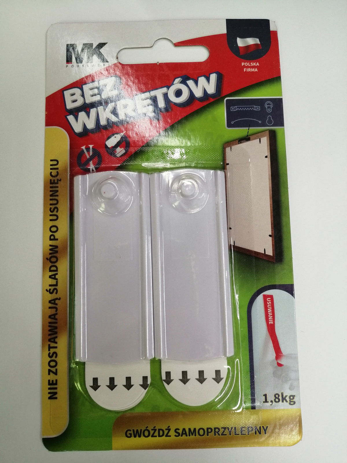 Gwóźdź samoprzylepny MK do tapet i tynku 2szt x 1,8kg biały