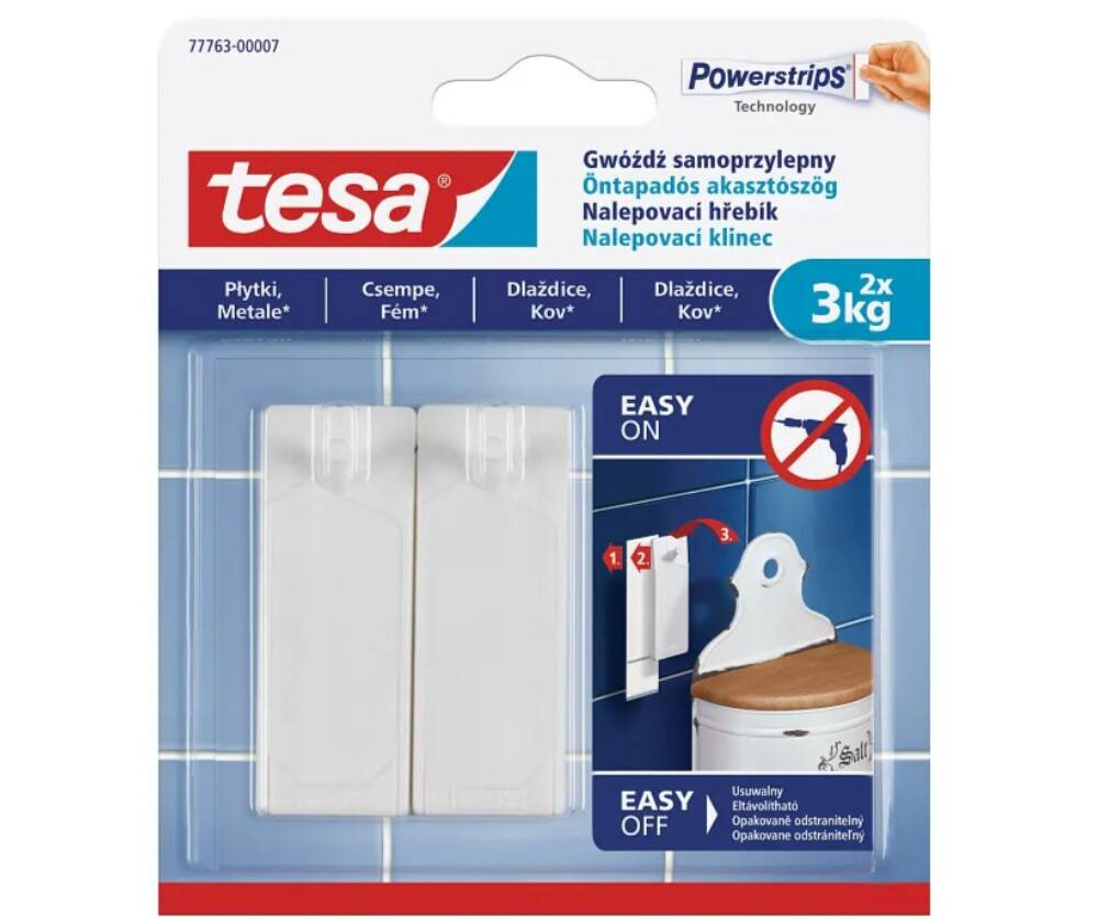 Gwóźdź samoprzylepny TESA do płytek i metalu 2szt x 3kg biały