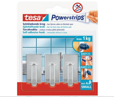 Haczyk samoprzylepny klasyczny mały TESA Powerstrips 3szt x 1kg chrom