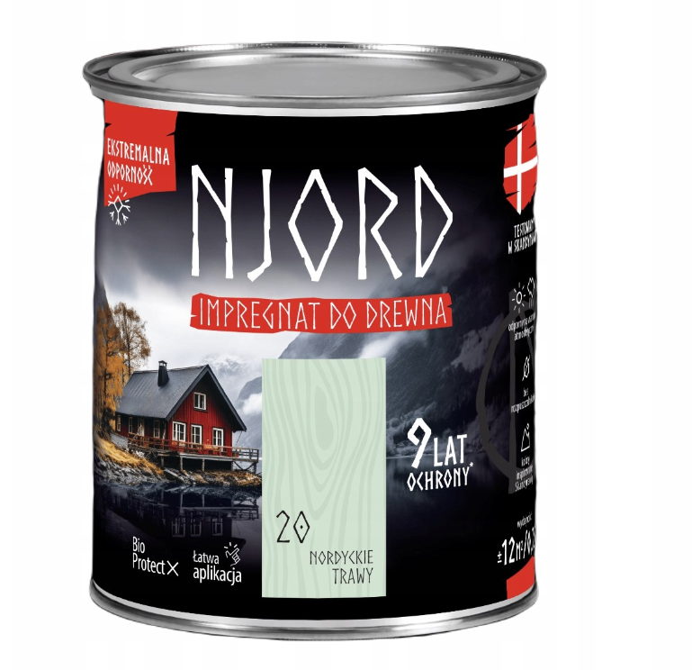 • Inspirowany Skandynawią impregnat do drewna NJORD służy do zabezpieczania powierzchni drewnianych znajdujących się na zewnątrz. Znajduje zastosowanie do malowania elewacji, wiat, altan, płotów i innych.