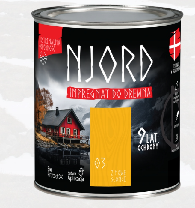 - Inspirowany Skandynawią impregnat do drewna NJORD służy do zabezpieczania powierzchni drewnianych znajdujących się na zewnątrz. Znajduje zastosowanie do malowania elewacji, wiat, altan, płotów i innych.