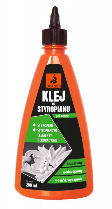- Nowoczesny, łatwy w użyciu, szybkoschnący klej do styropianu. Tworzy bezbarwną, wodoodporną i elastyczną spoinę.