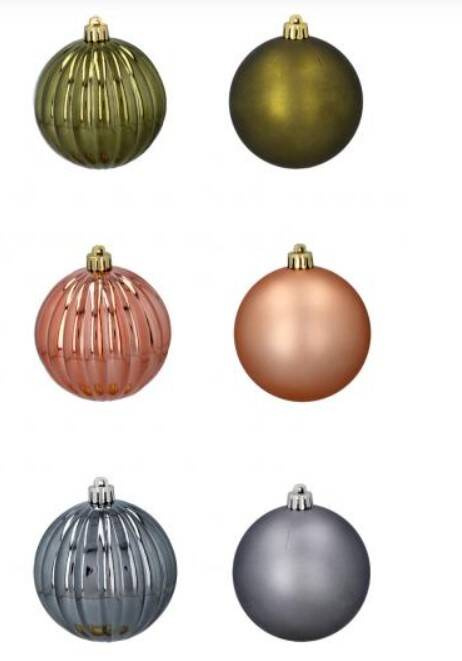 - Nadaj swojej choince elegancji i stylu z zestawem 12 bombek o średnicy 8 cm, dostępnych w trzech modnych kolorach: oliwkowym, miedzianym i grafitowym