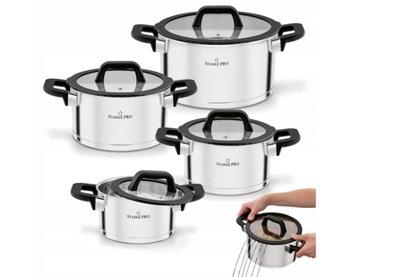 - Komplet 4 garnków Starke Pro Rigor 8 elementów wykonano ze stali nierdzewnej 18/10.