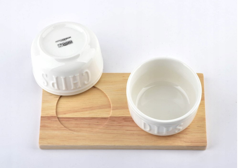 - Kpl. 2 misek porcelanowych z podstawką drewnianą z serii MODERN LIFE marki AFFEK DESIGN.