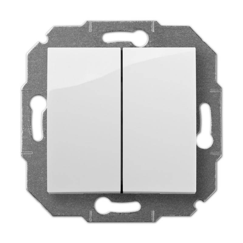 Łącznik podwójny wyposażony w 2 przyciski, przeznaczony do żyrandoli (podzielonych na 2 strefy). Posiada możliwość załączania dwóch różnych scen oświetlenia w pomieszczeniu.