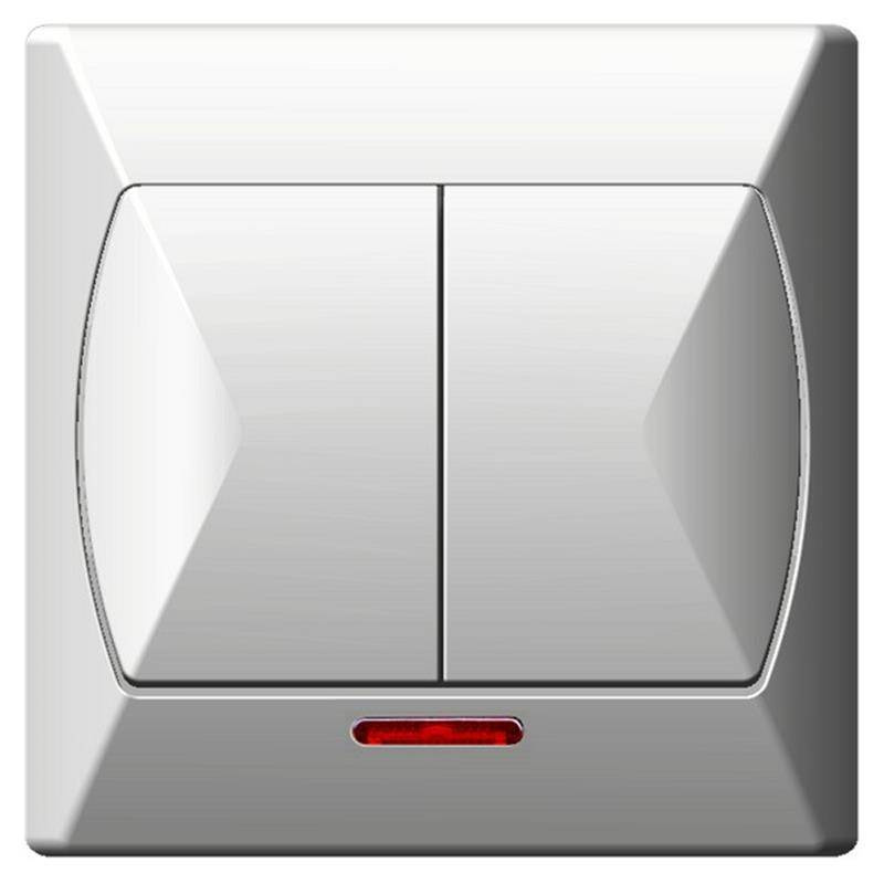 Łącznik podwójny wyposażony w 2 przyciski, przeznaczony do żyrandoli (podzielonych na 2 strefy). Posiada możliwość załączania dwóch różnych scen oświetlenia w pomieszczeniu.