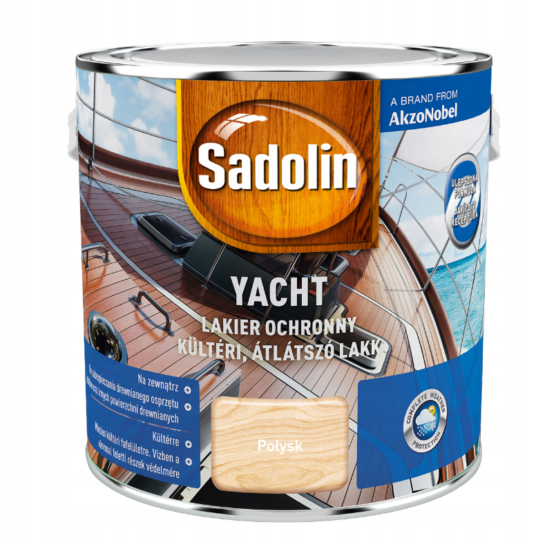 - Sadolin Yacht to nowoczesny lakier ochronny przeznaczony do zabezpieczania zewnętrznych powierzchni drewnianych, narażonych na okresowy kontakt z wodą.