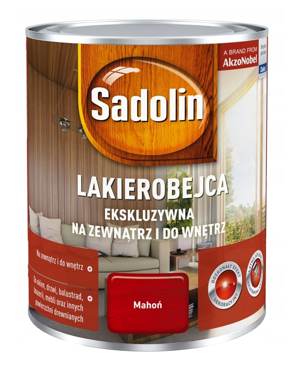 - Lakierobejca Ekskluzywna Sadolin jest najwyższej jakości środkiem do ochrony i dekoracji drewna, opracowanym z myślą o powierzchniach drewnianych wymagających idealnego wykończenia (stolarka otworowa, meble, boazerie itp.).