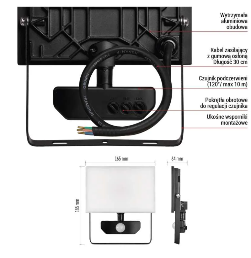 - Oszczędność energii do 90% w porównaniu z reflektorami halogenowymi: 14pt;">Nachylony wspornik montażowy umożliwia lepsze nachylenie reflektora w celu łatwego montażu