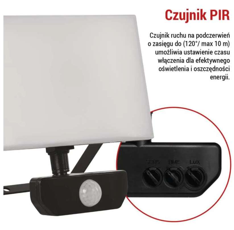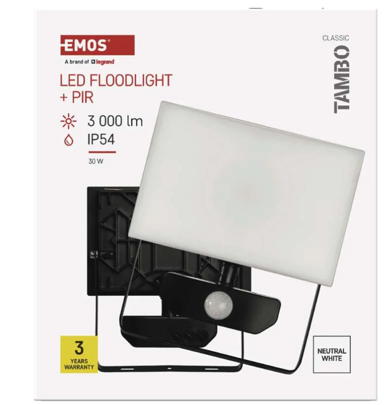 Naświetlacz LED TAMBO z czujnikiem PIR, 30 W, 3000 lm, czarny