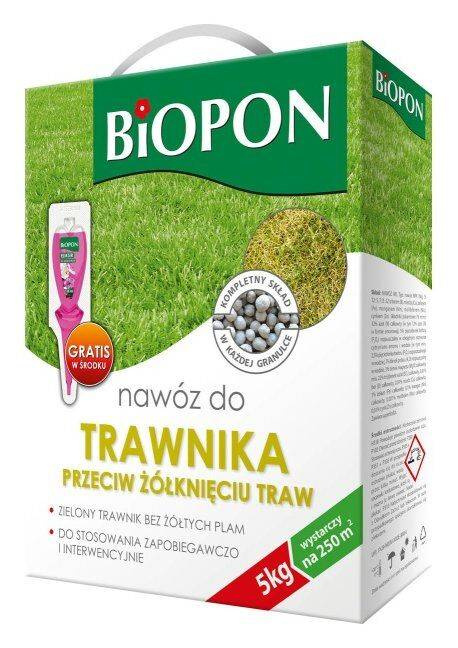 Opinie o Nawóz do trawnika przeciw żółknięciu traw BIOPON 5kg