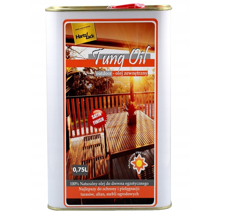 Tung Oil to sprawdzony, niezawodny, naturalny olej zewnętrzny do zabezpieczania zarówno twardych jak i miękkich gatunków drewna używanego na zewnątrz: tarasy, meble ogrodowe, altany. Specjalny skład na bazie oleju uzyskiwanego z nasion orzechów Tungowca zapewnia doskonałą ochronę drewna przed szarzeniem, brudem, a także niezwykle trwałe zabezpieczenie od niszczącego działania wody i słońca. Olej Tungowy ze względu na swoją odporność, używany jest także do impregnacji drewna narażonego na działanie wody morskiej.
