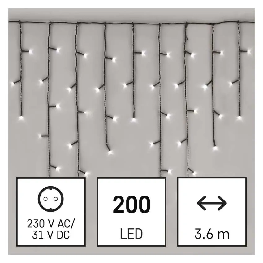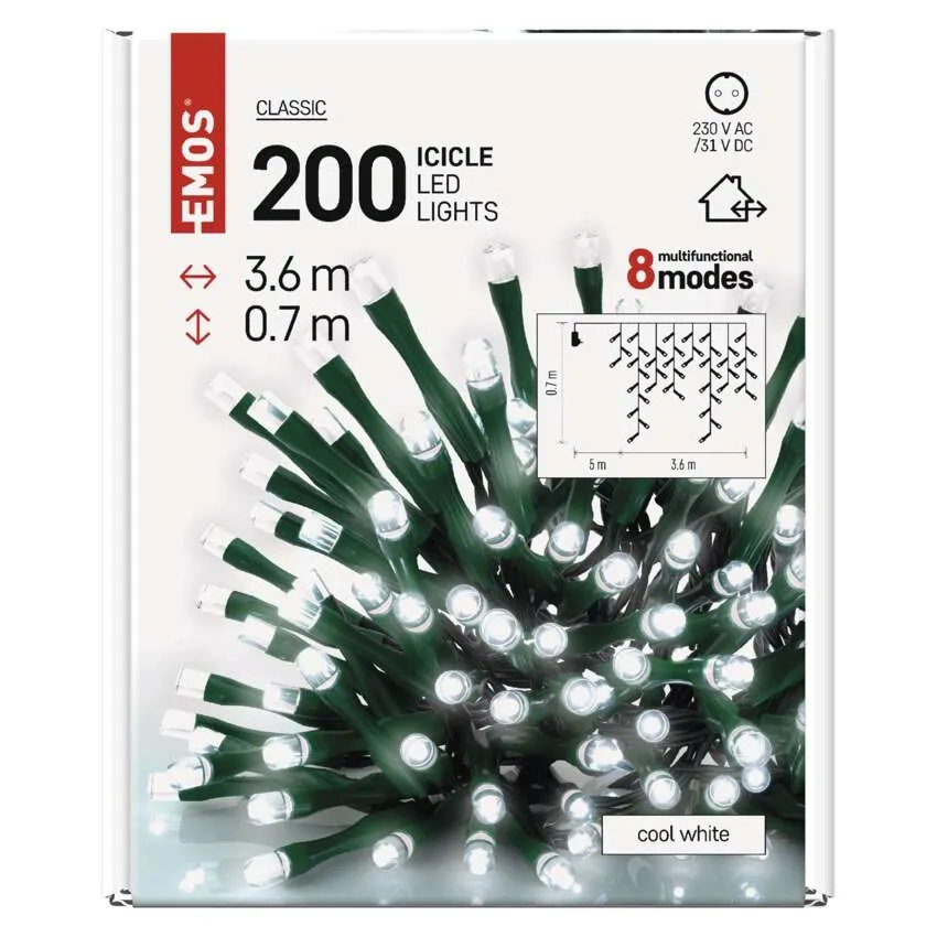 Oświetlenie świąteczne sople EMOS 200 LED 3,6m 8 programów IP44 biały zimny