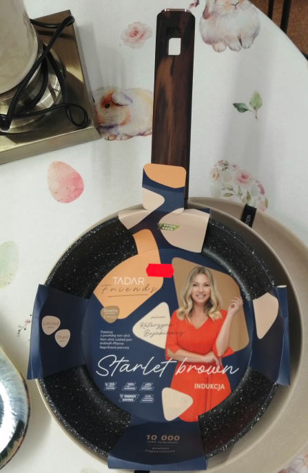 Ma tez oznaczenie PFOA Free, co gwarantuje , iż powstała bez dodatku toksycznych substancji. Co więcej, użyta powierzchnia zapobiegająca , przywieraniu składników wytrzyma do 10000cukli ścierania. Można na niej smażyć niemal beztłuszczowo. Z łatwością zadbasz o jej pielęgnację.