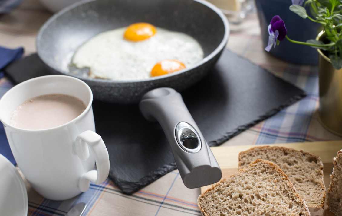 - wysokiej jakości powłoka nieprzywieralna o efekcie kamienia posiada właściwości nieprzywierające, co zapobiega przypalaniu potraw i jest łatwa w utrzymaniu czystości
