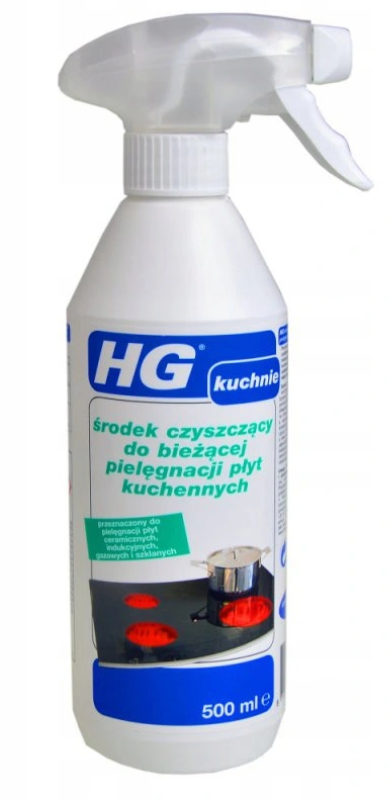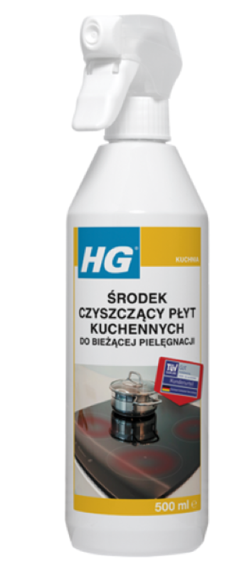 Przekręcić przednią końcówkę rozpylającą o ćwierć obrotu w lewo lub w prawo (STREAM= strumień/ SPRAY= rozpylacz). Spryskać kilkakrotnie płytkę kuchenną za pomocą HG „środka czyszczącego do bieżącej pielęgnacji” i pozostawić na chwilę. Przetrzeć za pomocą wilgotnej ściereczki a następnie wytrzeć do sucha czystą ściereczką lub papierowym ręcznikiem kuchennym. Po użyciu przekręcić końcówkę rozpylającą o ćwierć obrotu (OFF). W przypadku silnie zabrudzonych i przypalonych ceramicznych, indukcyjnych i halogenowych płyt kuchennych zastosować HG „intensywny środek czyszczący do ceramicznych płyt kuchennych”
