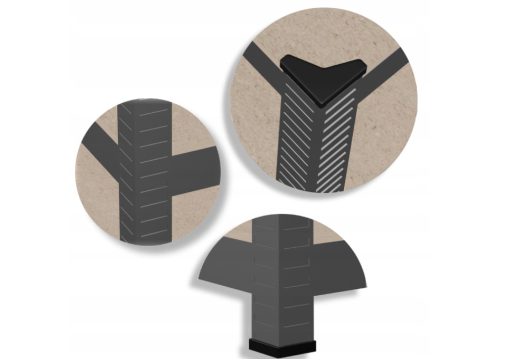 Wszystkie zakończenia elementów metalowych zostały wyposażone w plastikowe zaślepki. Ponadto krawędzie każdego elementu zostały odpowiednio wyprofilowane. Zapobiega to skaleczeniom, więc regał jest bezpieczny dla użytkowników.