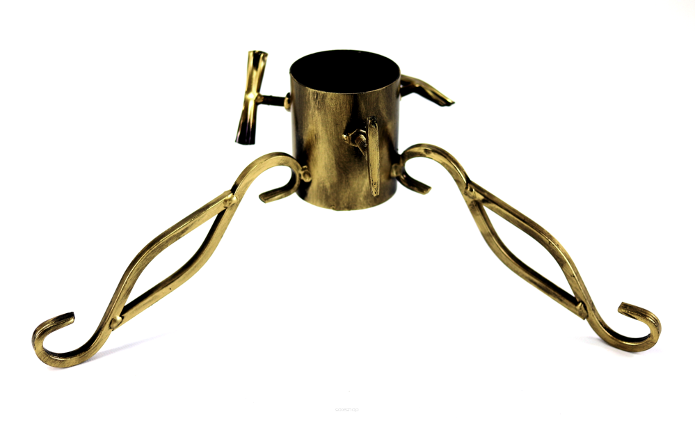 - Stojak choinkowy z metalu jest praktyczny i stanie się pięknym element, który znajdzie zastosowanie w każdym domu. Solidna konstrukcja zapewnia solidność i trwałość. Pień choinki mocowany jest za pomocą śruby "motylka". Dostępny w kolorze złotej patyny.