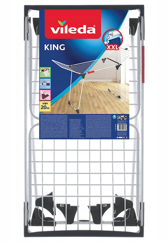 Składana suszarka Vileda wyposażona jest w kółka ułatwiające przenoszenie suszarki nawet z rozwieszonym praniem.