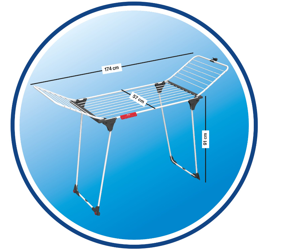 Wymiary po rozłożeniu: 174x57x91cm (wysokość suszarki od 91 - 101 cm),