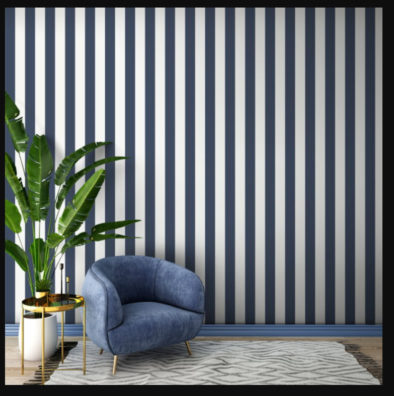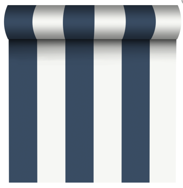 - Tapeta winylowa na flizelinie w pasy biało granatowe.