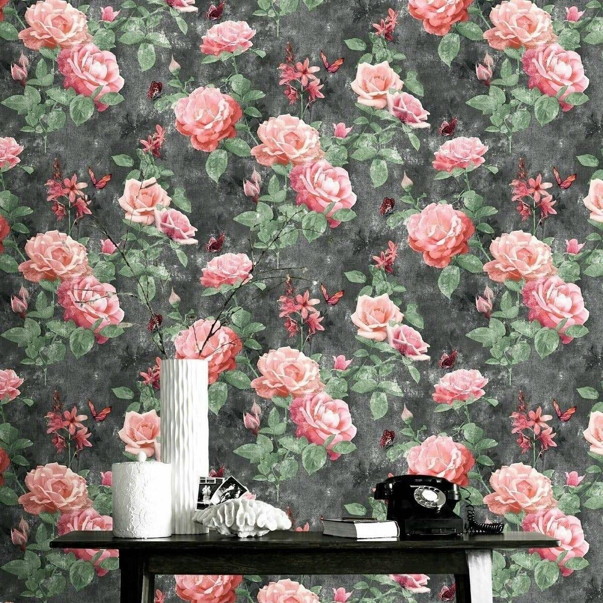 - Zmysłowe kwiaty w stylu vintage jakby namalowane utrzymane w pastelowej kolorystyce. Struktura gładka, matowa. Idealnie sprawdzi się jako ozdoba jednej ściany lub w połączeniu z gładkimi tłami.