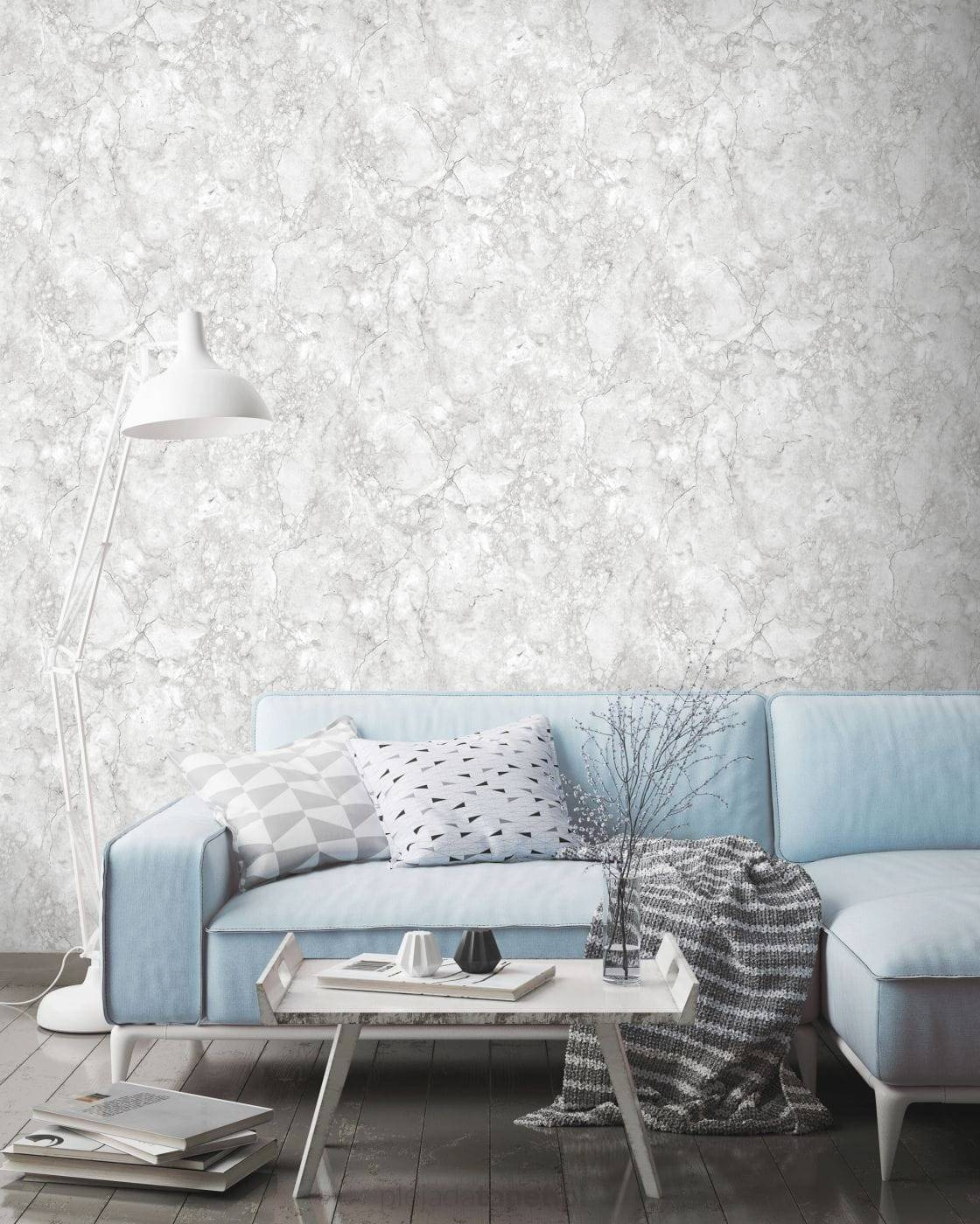 - Tapeta ścienna winylowa na flizelinie, imitująca szary marmur.