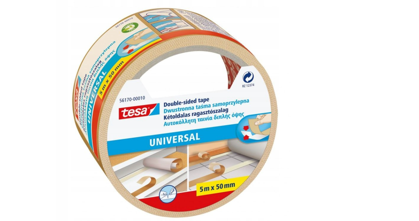 - Dwustronna taśma tesa Universal jest idealna do takich jak mocowanie wykładzin, prace rękodzielnicze czy dekoracja wnętrz