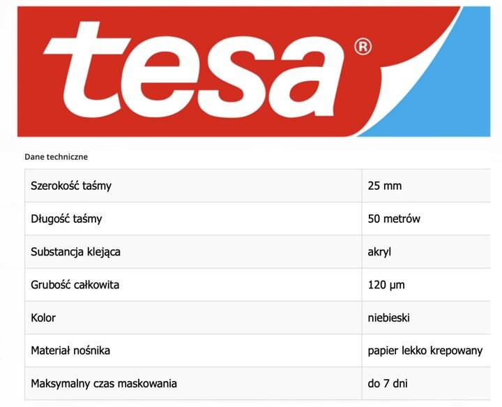 - Taśma malarska zewnętrzna TESA Professional 4431 UV Paper Mask 50mx25mm niebieska
