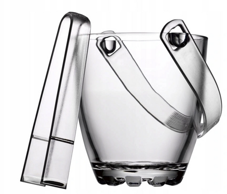 - Wiaderko do lodu wykonane jest z niehartowanego szkła. Wiaderko wyposażone jest w uchwyt oraz szczypce wykonane z tworzywa sztucznego. Cały zestaw bez problemu nadaje się do mycia w zmywarce.