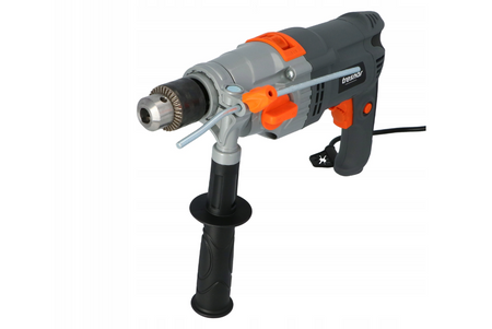 - W zestawie znajduje się: dodatkowy uchwyt, ogranicznik głębokości wiercenia oraz klucz do uchwytu wiertarskiego